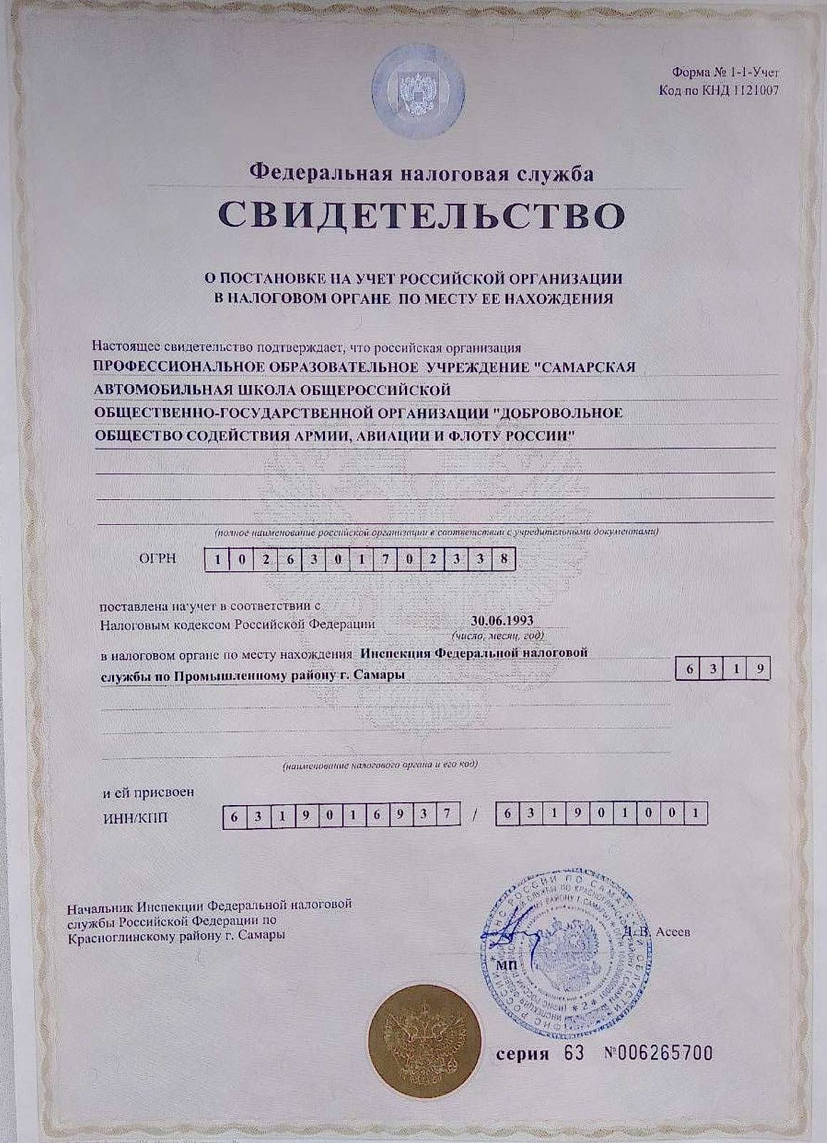 7. Свидетельство о постановке на учет в налоговом органе